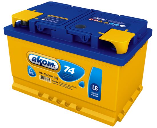 Аккумулятор Аком LB 74Ah/700 прав.+ /277x175x175/ низкий, обратная полярность