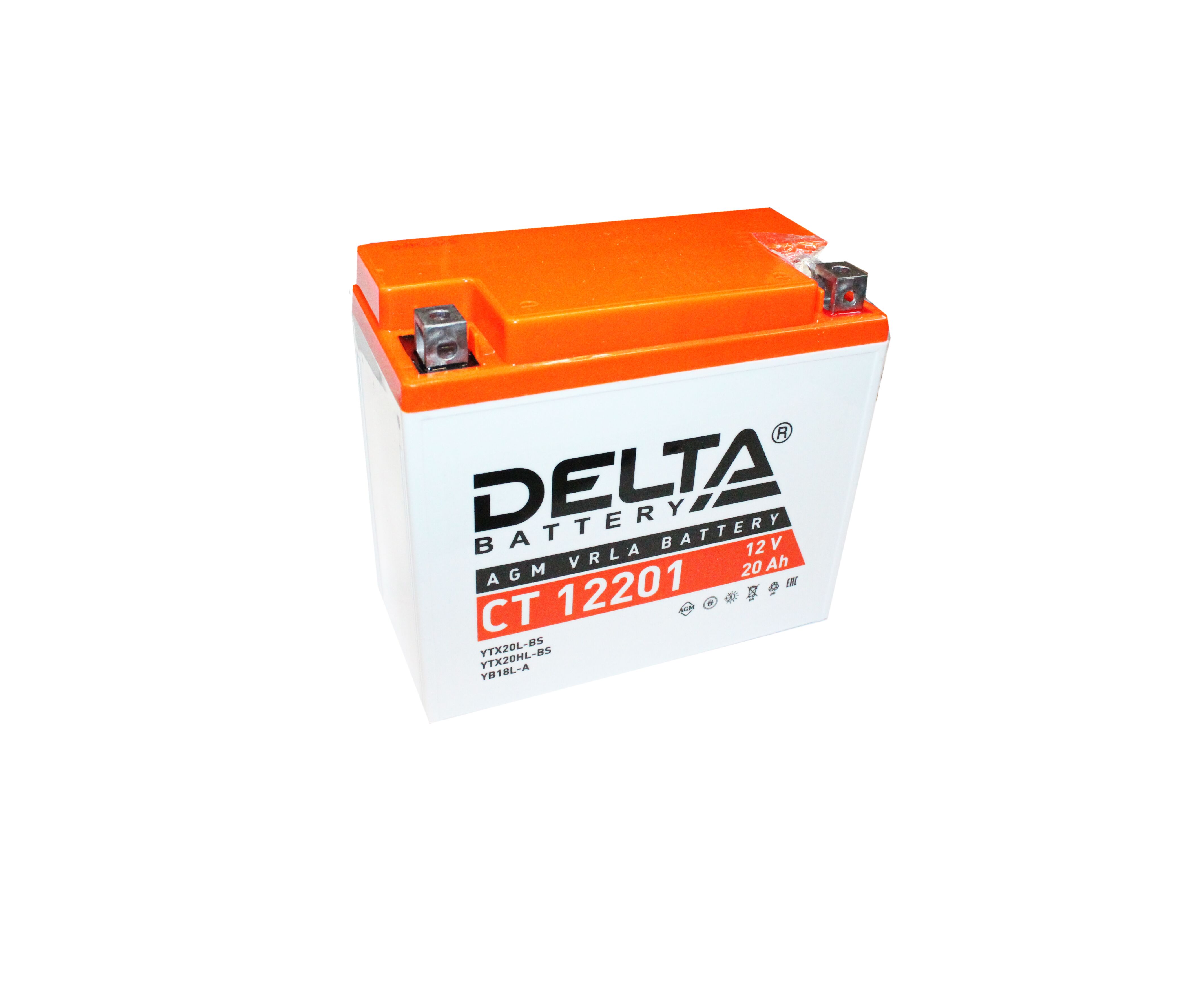 Аккумулятор (мото) 12V DELTA CT 12201 20Ah/270 клеммы под винт /180x87x153/ прав.+ обратная полярнос