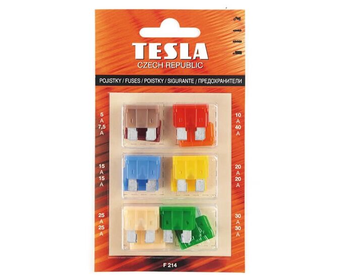 Предохранители плоские (5А,7,5А,2x10А,15А,20А,25А,30А) в блистере (Tesla)