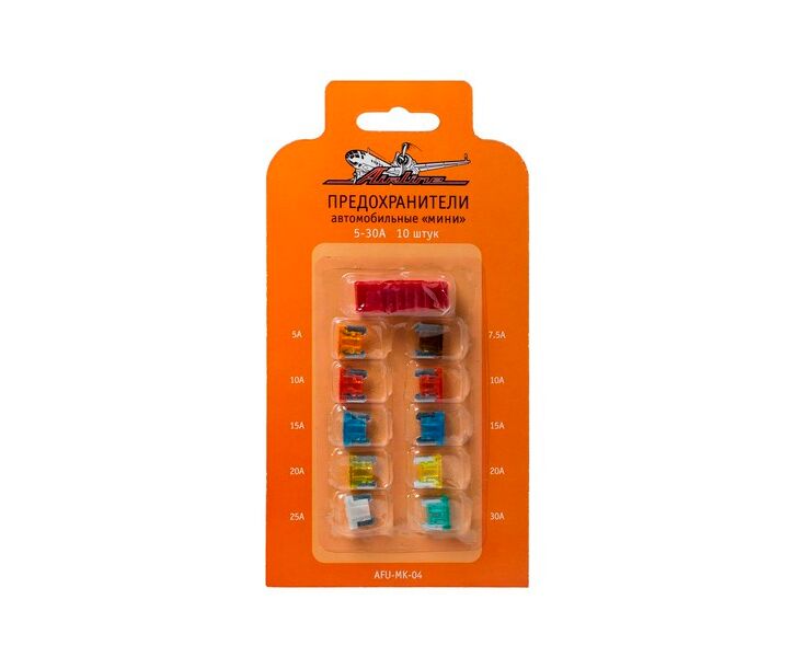 Предохранители плоские Micro (2x5А,7,5А,10А,15А,20А,1x25А,30А) в блистере (AIRLINE) AFU-MK-04
