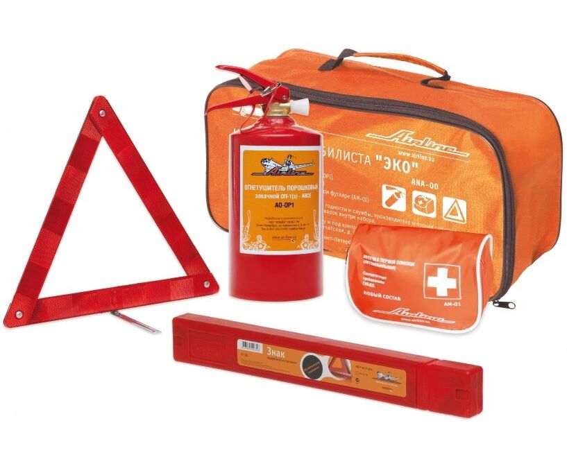Набор автомобилиста "ЭКО" (Знак+Аптечка+Огнетушитель 1кг.) (AIRLINE) ANA-00