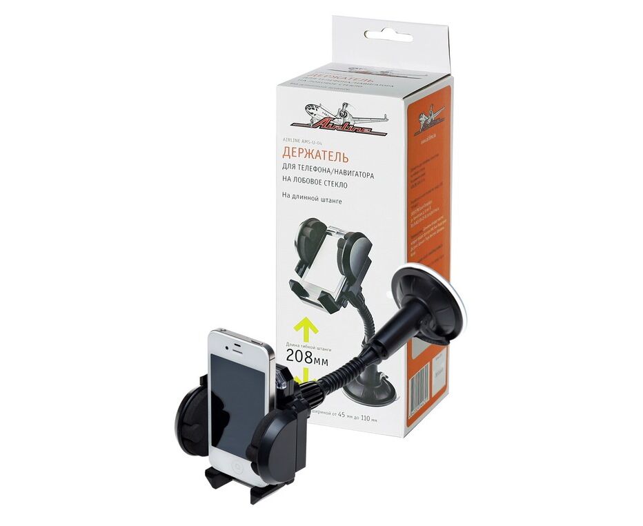 Держатель телефона на лобовое стекло гибкая ножка (длинная) (AIRLINE) AMS-U-04