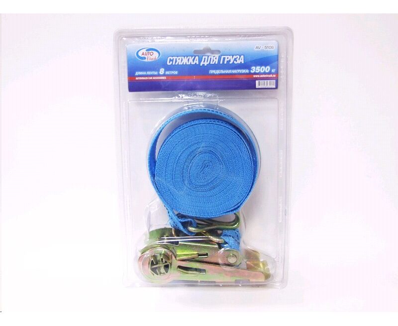 Стяжка для груза с трещоткой 8м, 3,5т усиленная в блистере (Autovirazh) AV-5108