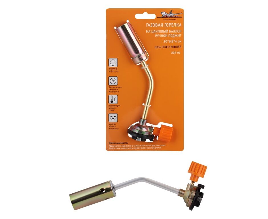 Горелка газовая на цанговый баллон, ручной поджиг, 20x6,8x4 см (AIRLINE) AGT-01