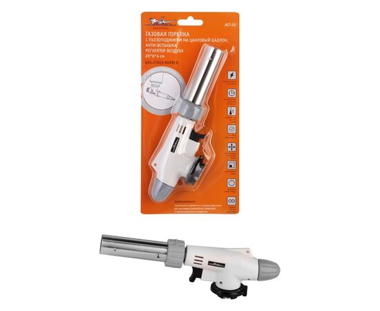Горелка газовая (пьезоподжиг) на цанговый баллон, анти-вспышка, регулятор воздуха, 20x6x4 см (AIRLIN