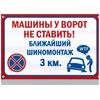 Табличка "Машины у ворот не ставить" пластик 3мм 30х19,5см TPS016