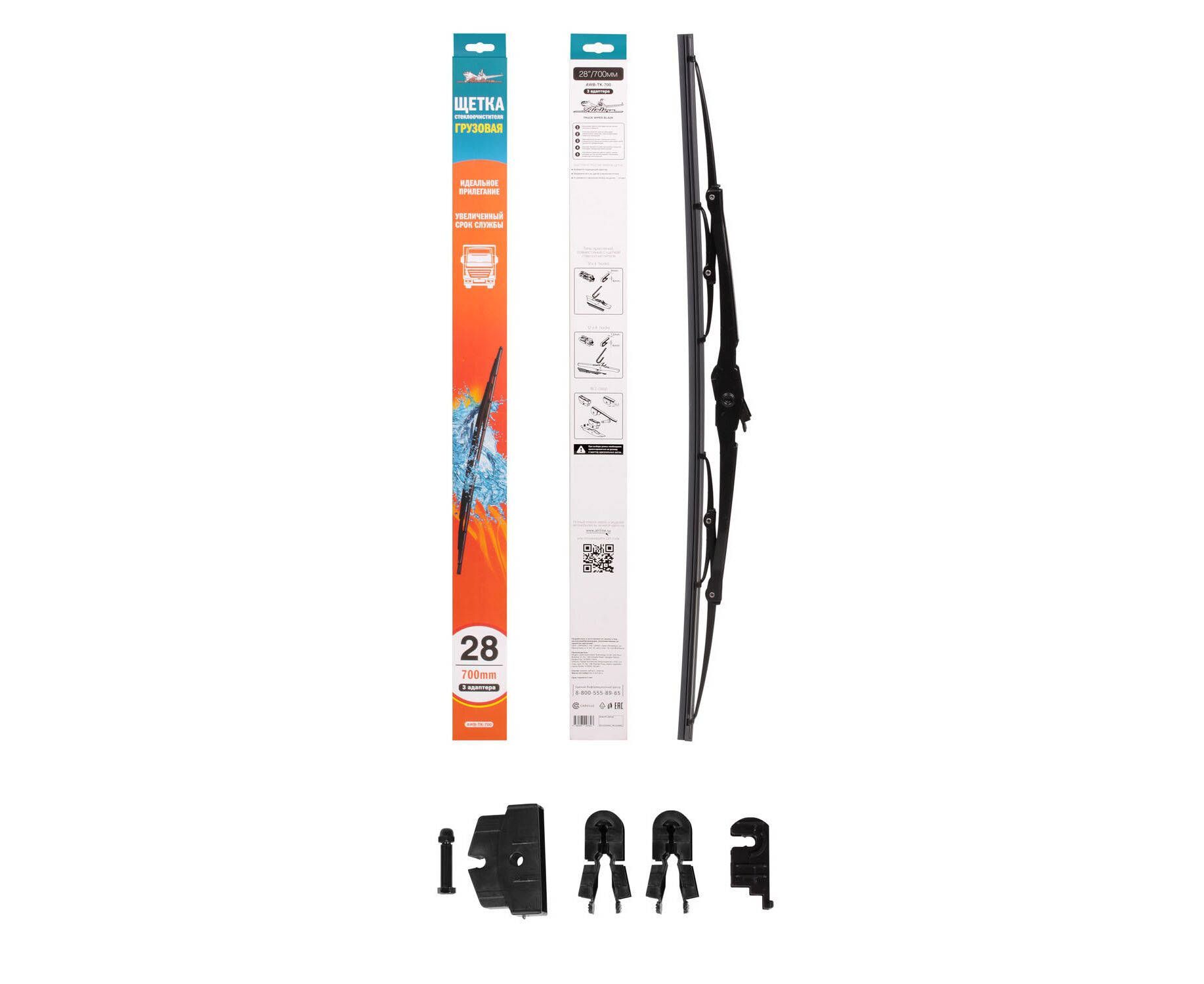 Щетка стеклоочистителя каркасная 70см (для грузовиков) 3 адаптера (AIRLINE) AWB-TK-700