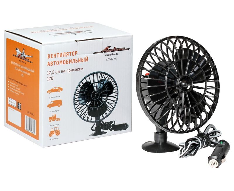 Вентилятор автомобильный 12V 12,5см (пластик) на присоске (AIRLINE) ACF-12-01