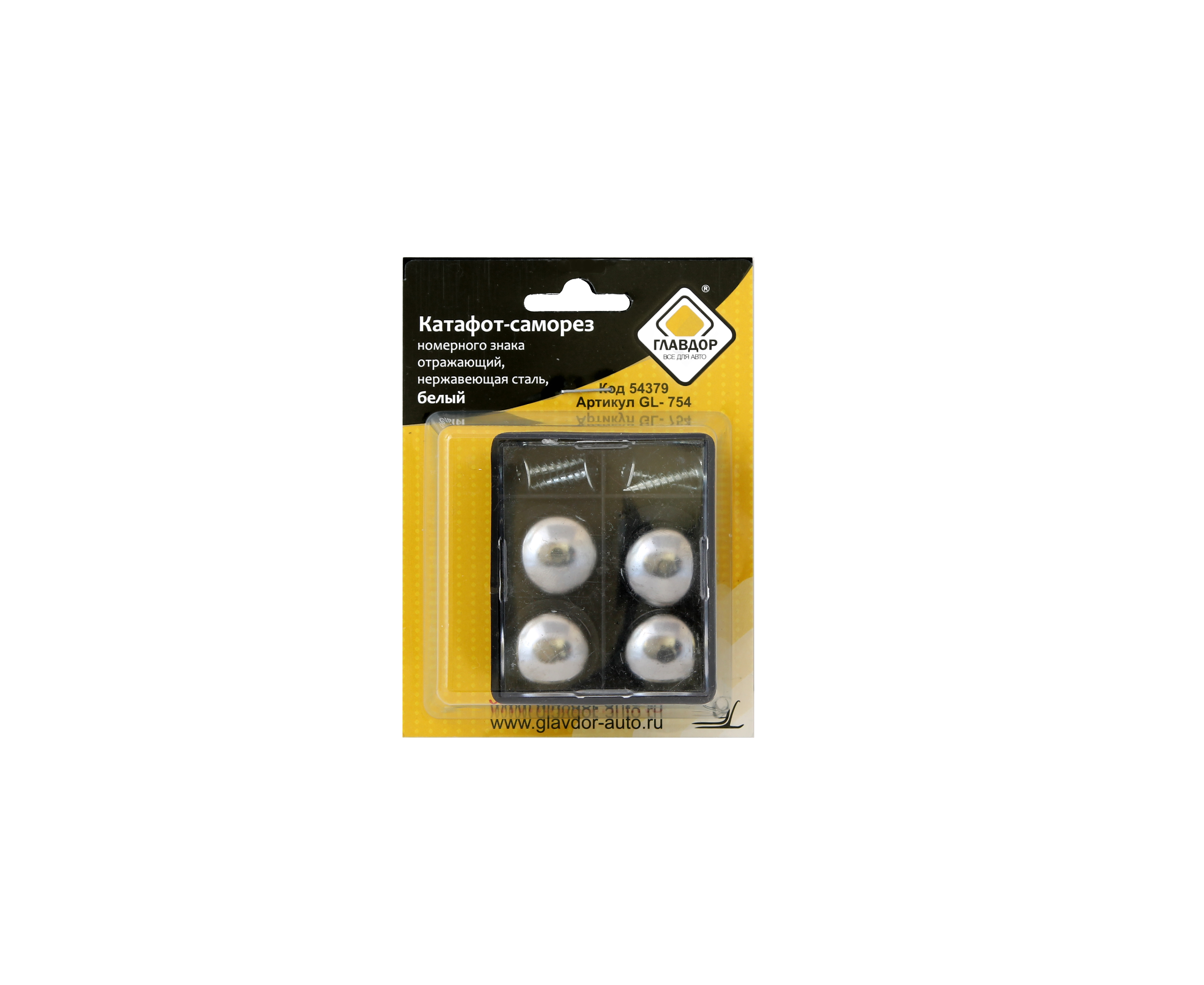 Крепление номерного знака (саморез) отражающий, нерж. сталь 4шт (ГЛАВДОР) GL-754