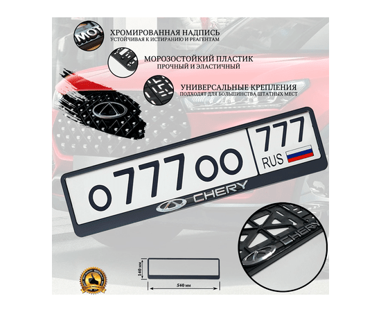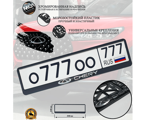 Рамка номерного знака CHERY рельефная серебро /1121STDCHER