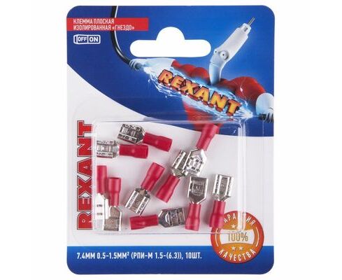 Клемма "Мама" 6,3мм изолированная (7.4 мм, 0.5-1.5 мм²) (10шт) (REXANT) 060387A