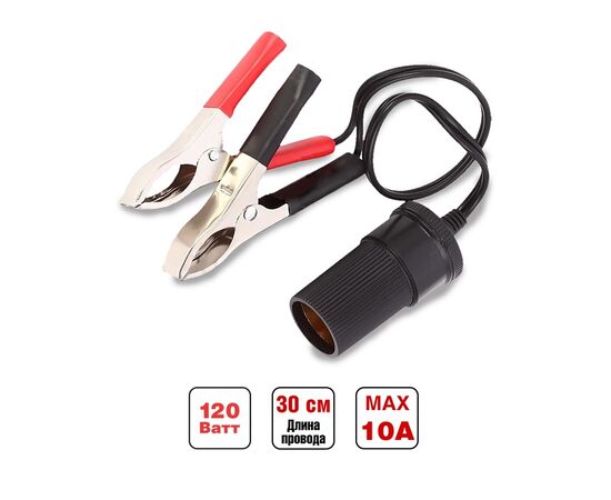 Удлинитель прикуривателя для подключения напрямую к клемам аккумулятора с длиной провода 30см. Работа в сетях с номинальным напряжением 12В и 24В. Универсален для любых автомобилей.
