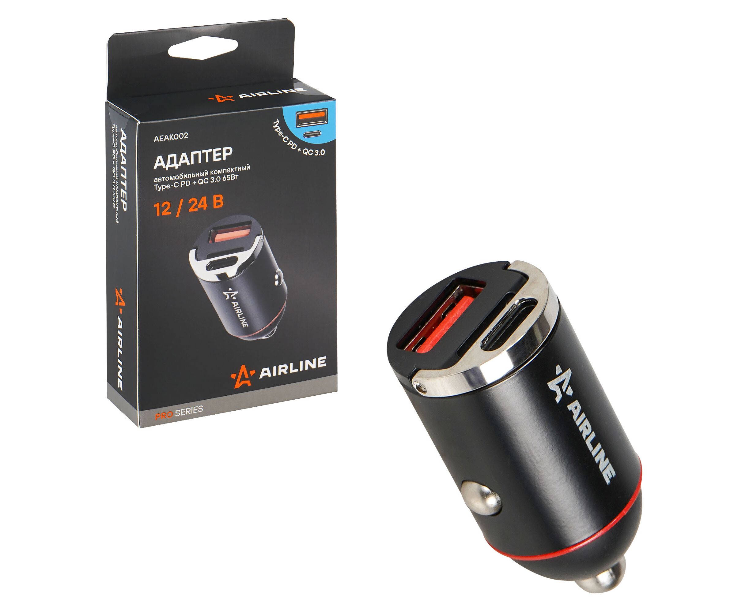 ЗУ адаптер Type-C PD + QC 3.0 65Вт, 12/24В PRO (AIRLINE) AEAK002