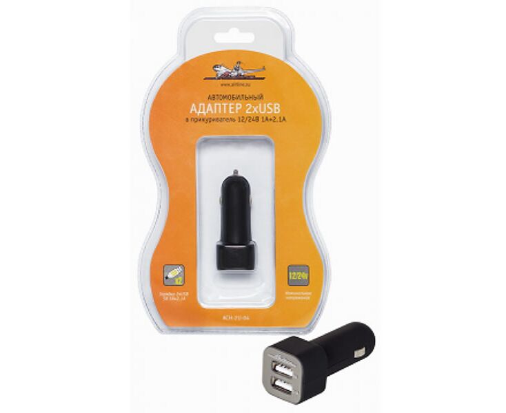 ЗУ адаптер USBx2 1A и 2.1А в прикуриватель 12/24В (AIRLINE) ACH2U04