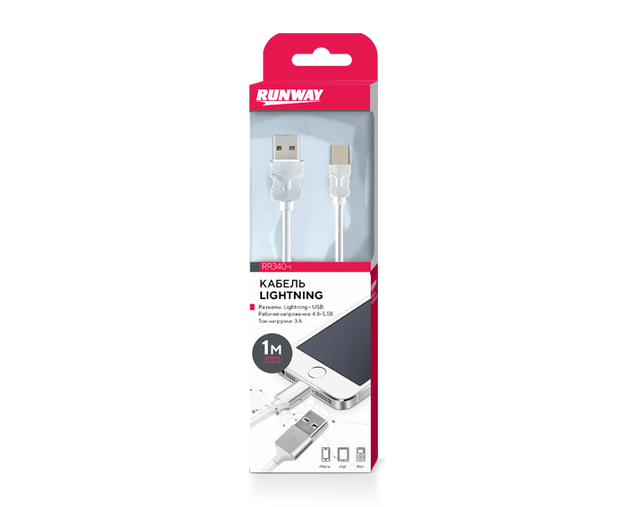 ЗУ датакабель iPhone 5/6/7/8/X (1м) белый (RUNWAY) RR340-i