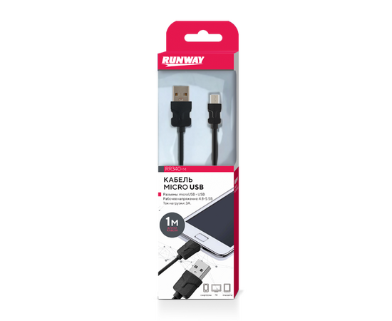ЗУ датакабель microUSB (1м) черный (RUNWAY) RR340-m