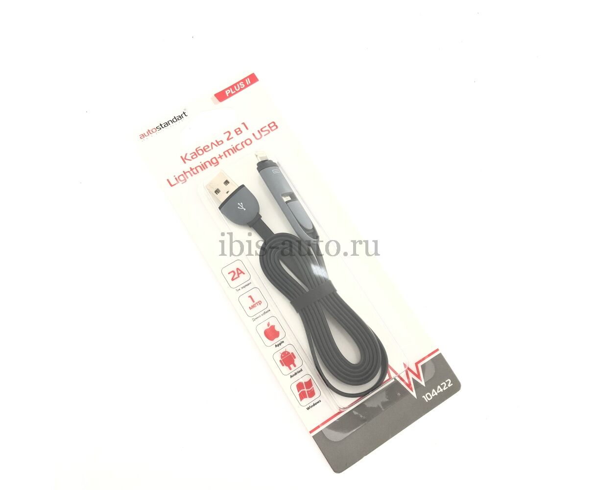 ЗУ датакабель microUSB+lighting (длина 1м) PLUS 2 В 1 (Autostandart) 104422