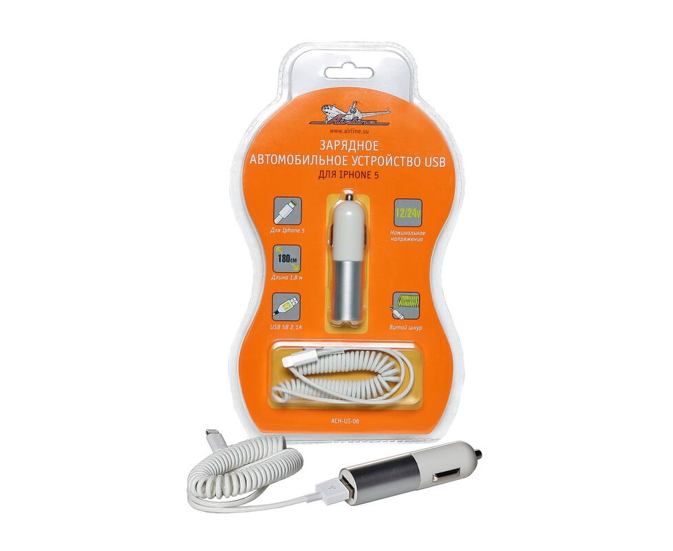 ЗУ универсальное для моб. тел. iPhone 5 (адаптер+шнур) (AIRLINE) ACH-UI-06
