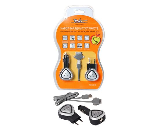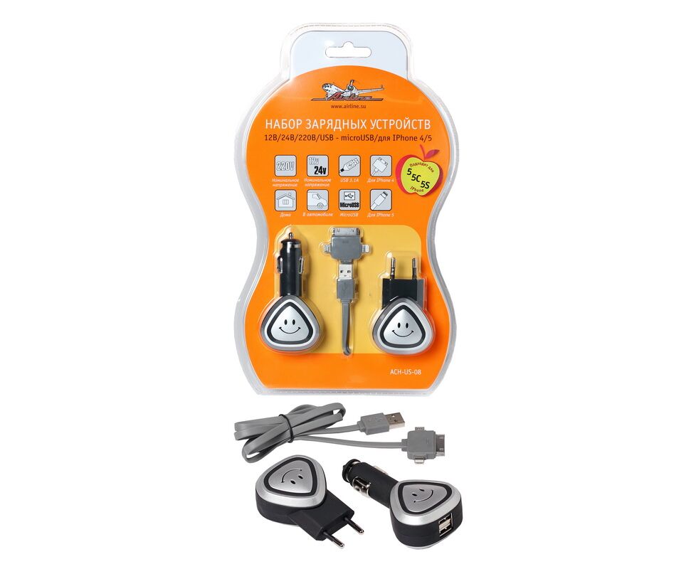 ЗУ универсальное для моб. тел. USB-microUSB/для iPhone 4/5 12В/24В/220В (AIRLINE) ACH-US-08