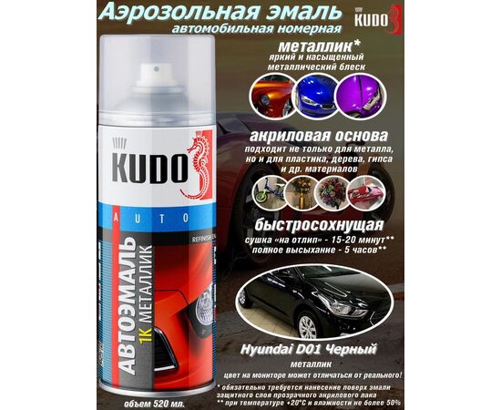 Краска D01 Чёрная ТАГАЗ металлик 520мл аэрозоль (KUDO) KU-42355