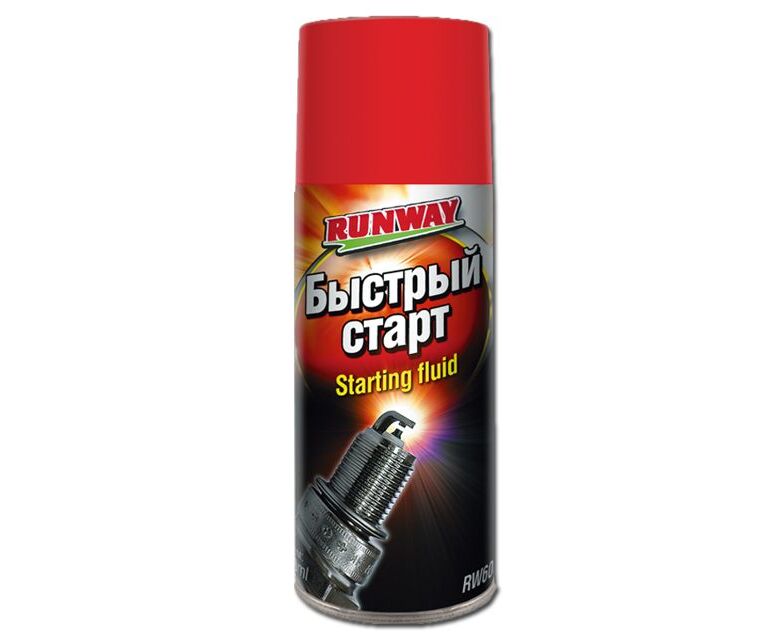 Быстрый старт RUNWAY – специальная аэрозоль с высоким содержанием эфира для запуска двигателя в холодное время года. Состав содержит специальные смазочные компоненты для верхней части цилиндров, предотвращающие микрозадиры при пуске двигателя в холодное время. Предотвращает износ стартера и свечей зажигания, уменьшает нагрузку на аккумулятор и двигатель во время пуска. Предназначен для любых бензиновых и дизельных двигателей.