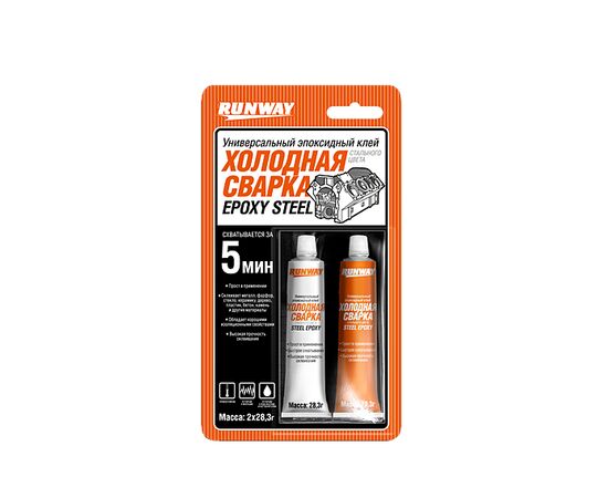 RUNWAY «Холодная сварка» предназначена для быстрого и надежного ремонта и склеивания материалов в любых сочетаниях: все виды металлов и их сплавы, фарфор, стекло, керамика, дерево, пластик, бетон, камень и другие материалы.