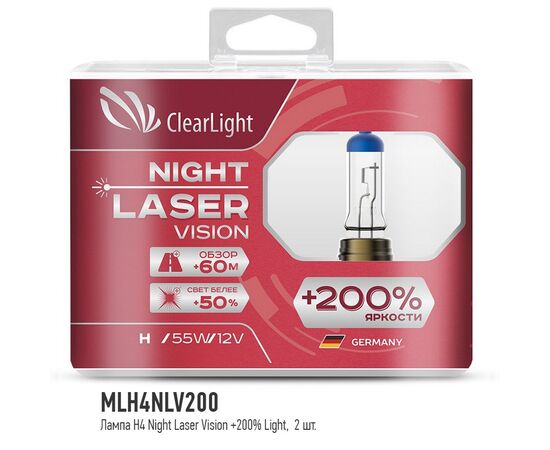 Лампа 12 В, H4, 60/55W P43t +200% Night Laser Vision (2шт) (ClearLigНt)
