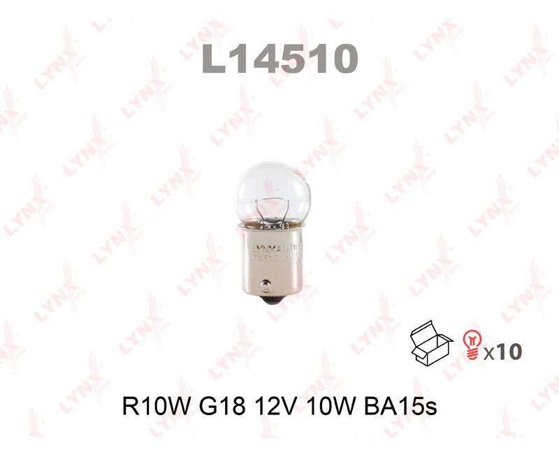 Лампа 12 В, R10W BA15s (LYNXauto) L14510