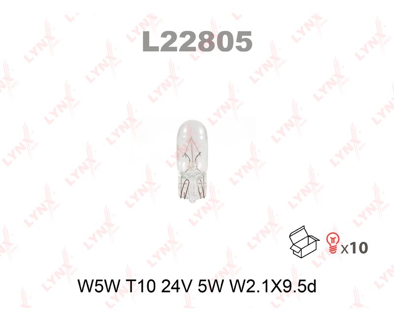 Лампа 24 В, W5W (W2.1х9.5d) (LYNXauto) L22805