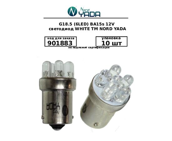 Светодиод 12V R10W G18.5 (6LED) BA15s белый (Nord Yada) 901883