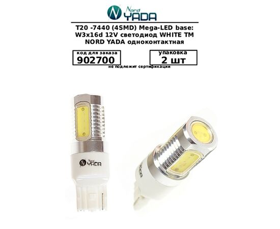 Светодиод 12V T20 -7440 (4SMD) Mega-LED base:W3x16d белый одноконтактная (Nord Yada) 902700