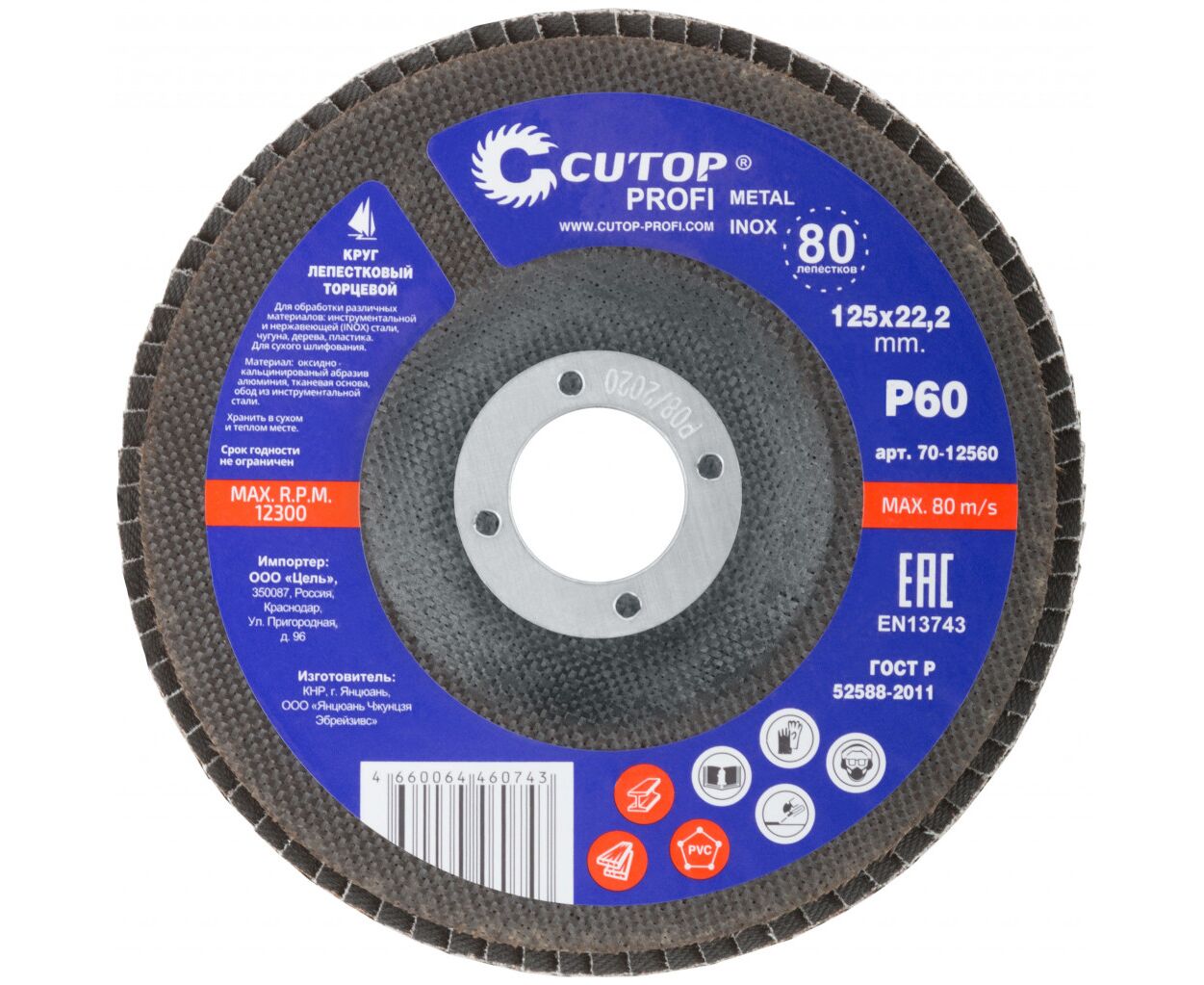 Круг лепестковый торцевой cutop profi (80 лепестков) 125х22,2 мм, Р60