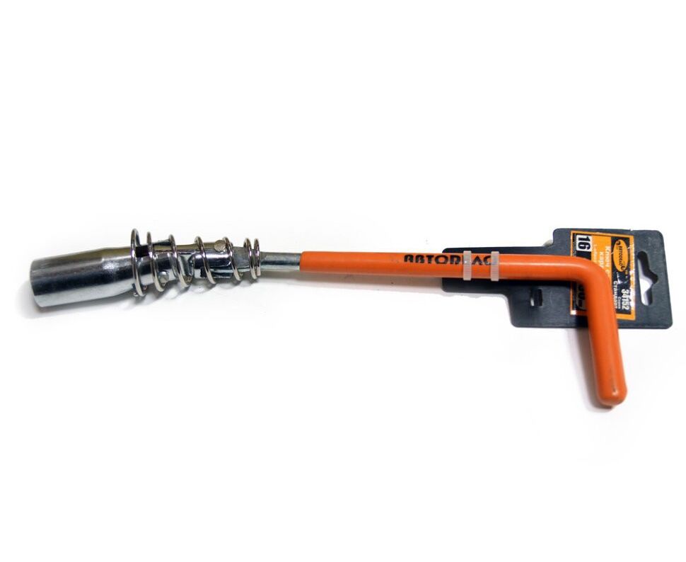 Ключ свечной 16мм карданный Г-образный с пружиной малый (АвтоДело) 34152