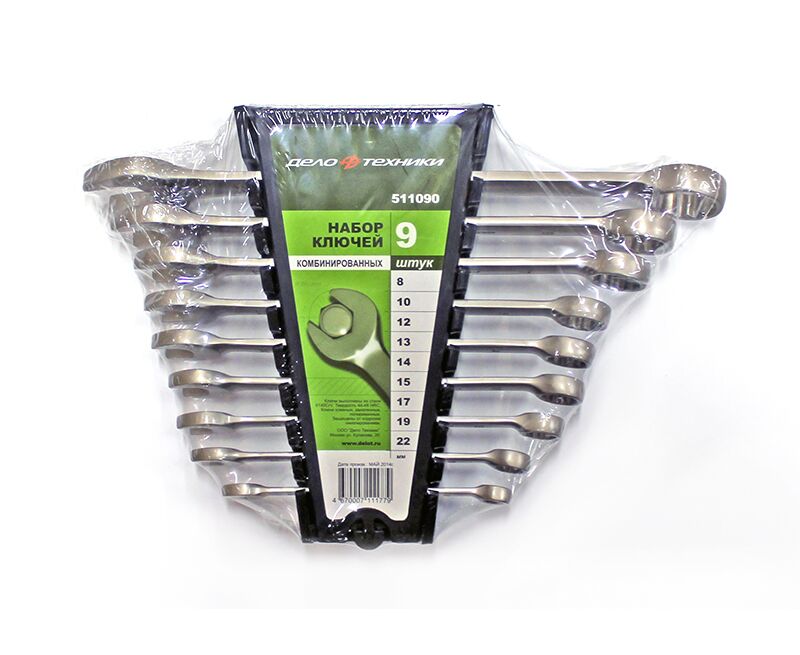 Набор ключей комбинированных 9 предметов 8-22 пластик холдер (ДелоТехники) 511090
