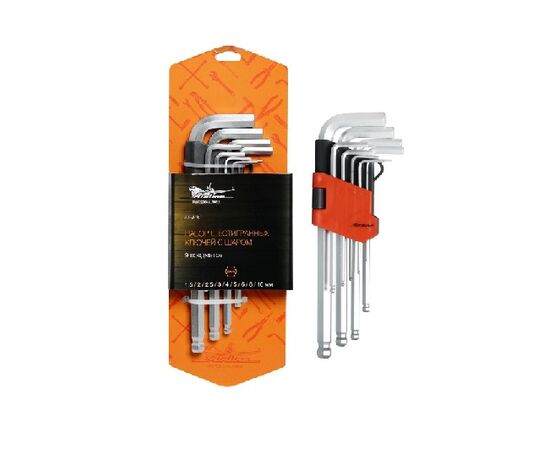 Набор ключей шестигранных Г-образных 9 предметов 1,5-10 с шаром (1.5,2,2.5,3,4,5,6,8,10 мм) AT-9-16