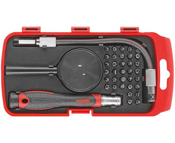 Отвертка с битами для точных работ, 33 CrV биты, гибкий переходник 175 мм, лупа, пластиковый бокс