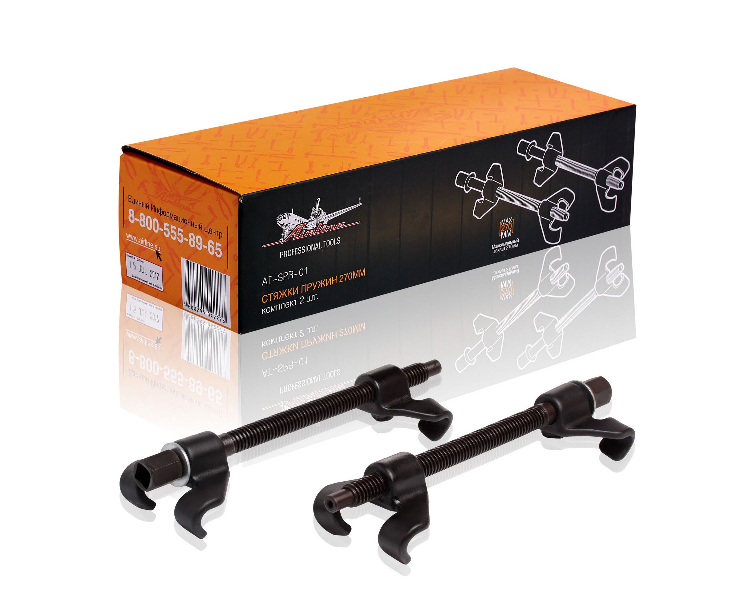 Стяжка пружин 270мм двойной скользящий крюк 2 шт (AIRLINE) AT-SPR-01
