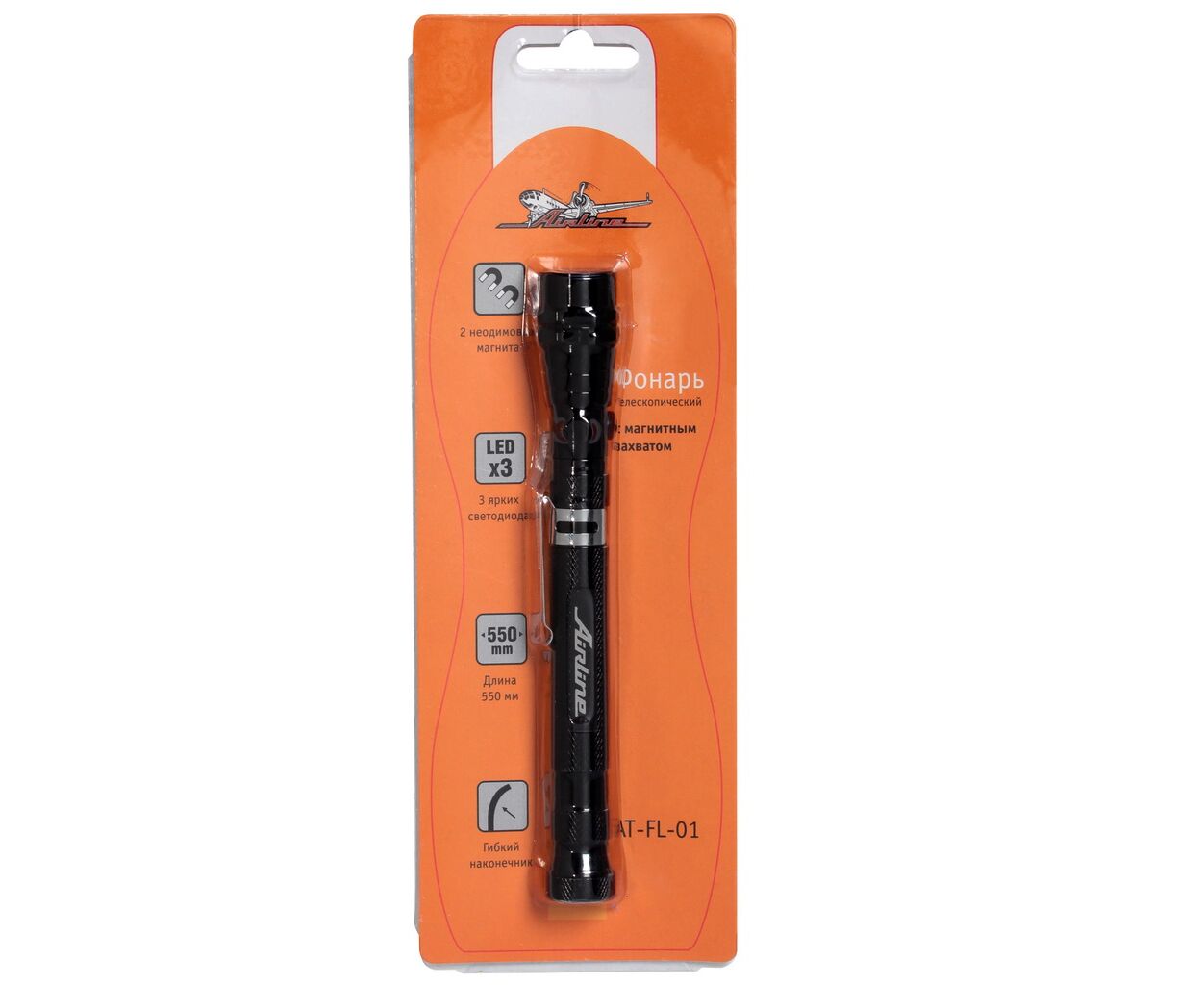 Захват магнитный телескопический L=550мм гибкий с фонарем (AIRLINE) AT-FL-01