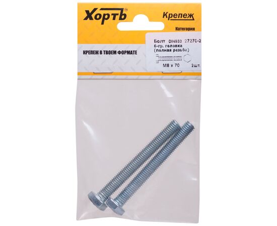 Болт 6-гранная головка (полная резьба) М8х70 (фасовка 2шт) DIN933