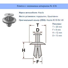 Клипса № 636 Брызговики, подкрылки Mazda