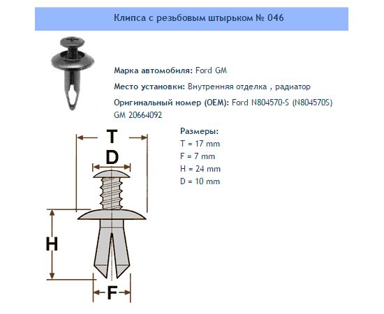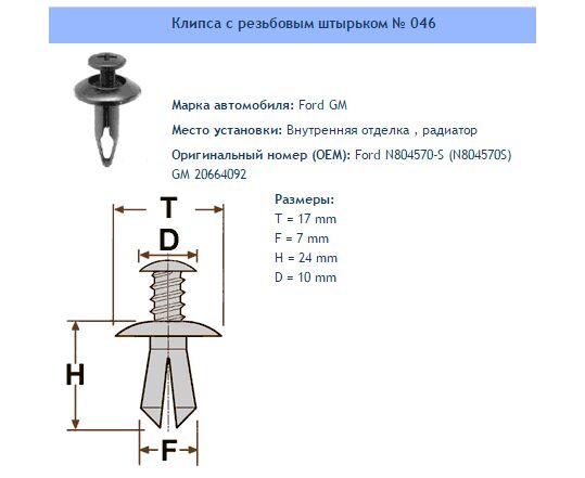 Клипса № 046 Внутренняя отделка , радиатор Ford GM