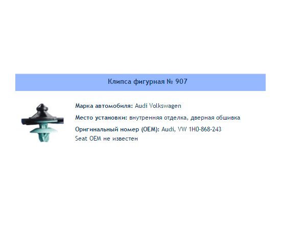 Клипса № 907 Внутренняя отделка Audi VW Seat