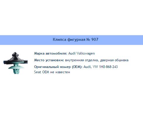 Клипса № 907 Внутренняя отделка Audi VW Seat