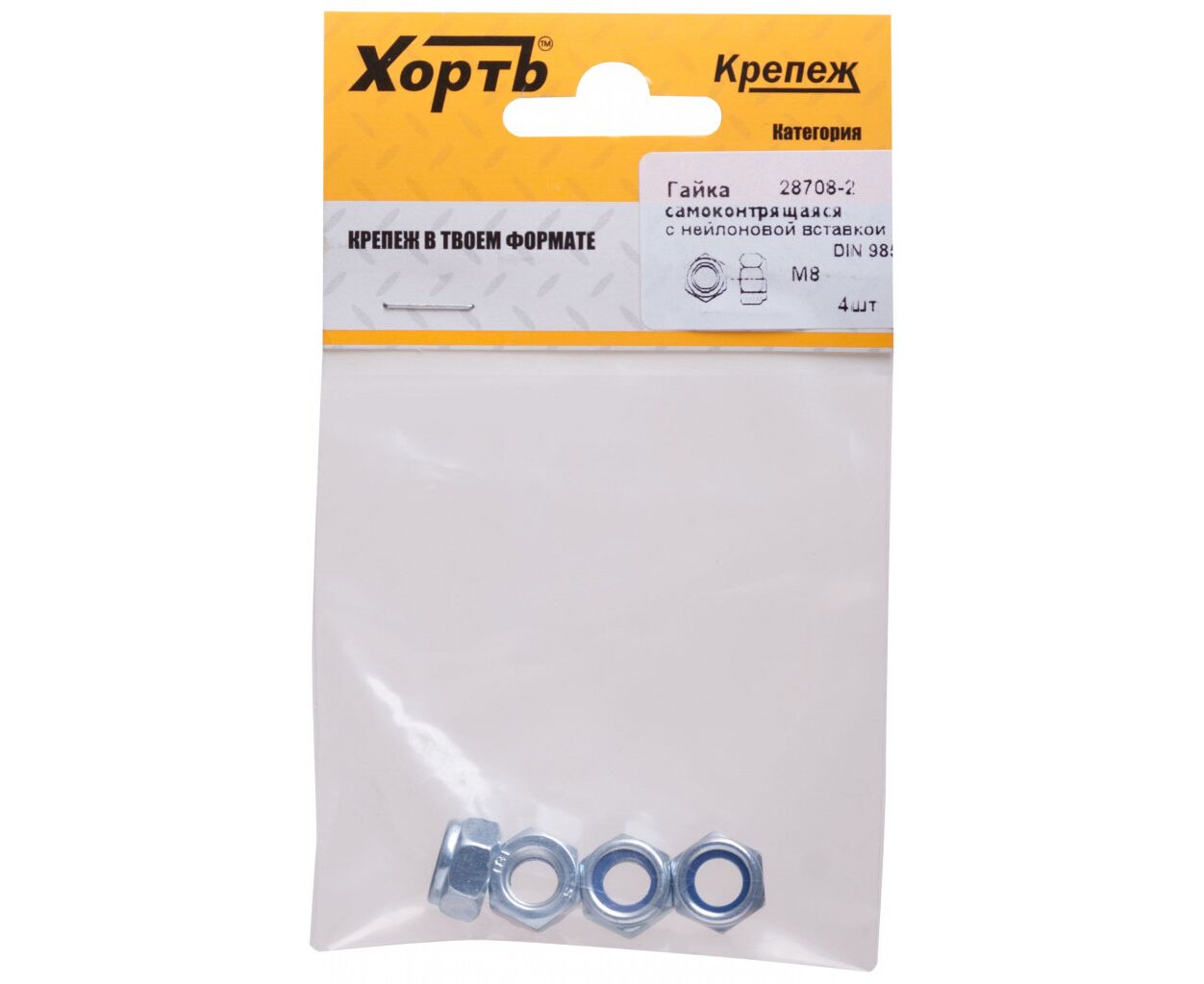 Гайка самоконтрящаяся М8 с нейлоновой вставкой (фасовка 4шт) DIN985
