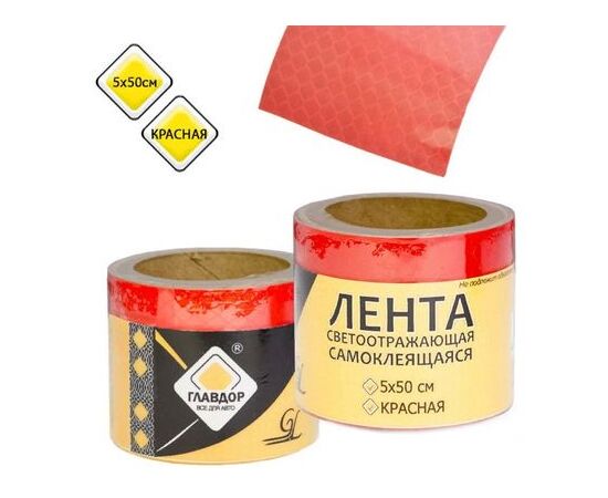 Лента светоотражающая ГЛАВДОР самоклеящаяся 5х50см красная GL-709