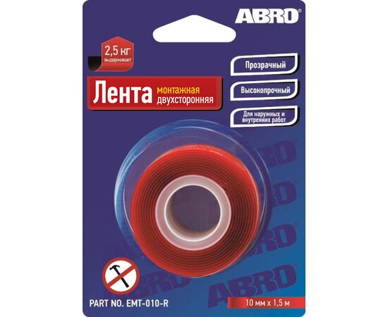 Скотч двусторонний 10мм акриловый (прозрачный) сверхпрочный (ABRO) EMT-010-R