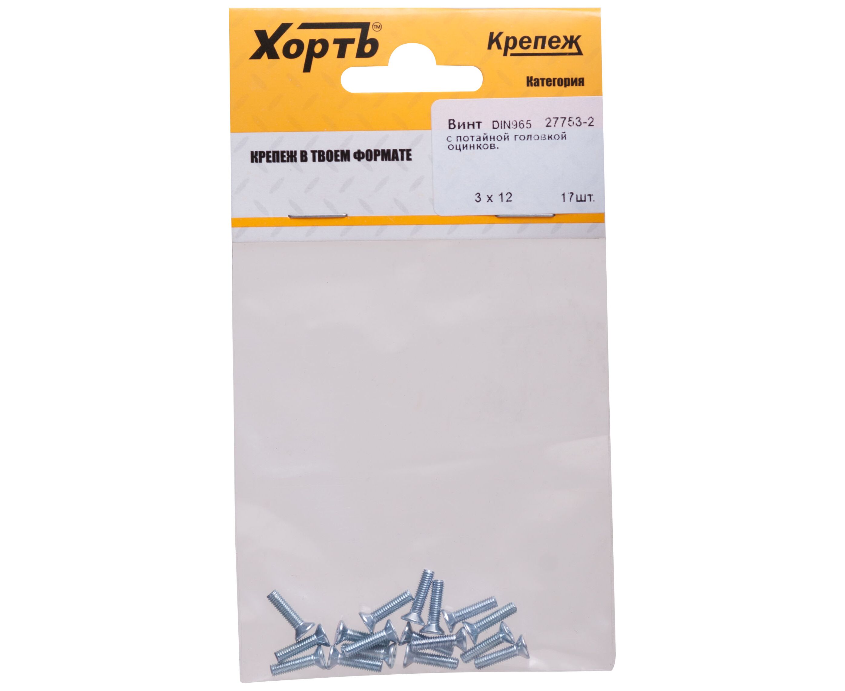 Винт DIN965 4х20 с потайной головкой с полной резьбой оцинк. (фасовка 12шт)