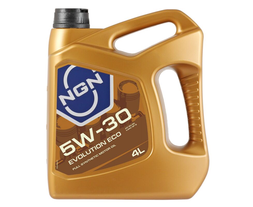 Полностью синтетическое моторное масло NGN EVOLUTION ECO 5W-30 с длительным сроком эксплуатации на основе технологии MidSAPS (сниженное содержание сульфатной золы, фосфора и серы) для бензиновых двигателей легковых автомобилей. Предназначено для использования в автомобилях, оснащенных каталитическими нейтрализаторами отработавших газов, двигателями с турбонаддувом и системами прямого впрыска, где требуется применение масел типа API SN/SN-RC (а также SJ, SL и SM) или ILSAC GF-5 (а также GF-2,-3 и -4).