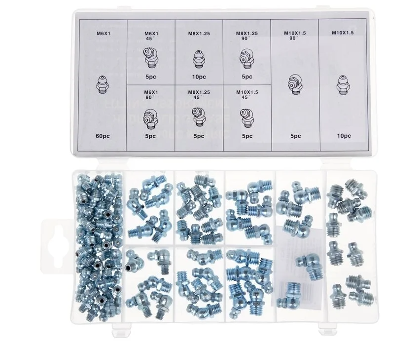 Набор пресс-масленок (9 видов: прямые, угловые 45 градусов, 90 градусов; 110шт) (6030)