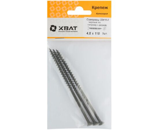 Саморезы по гипроку к дереву 4,8х110 черные (фасовка 3шт)